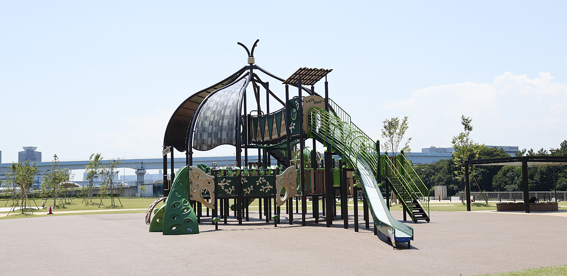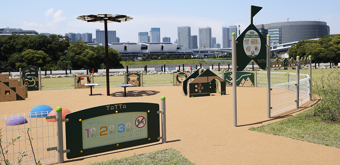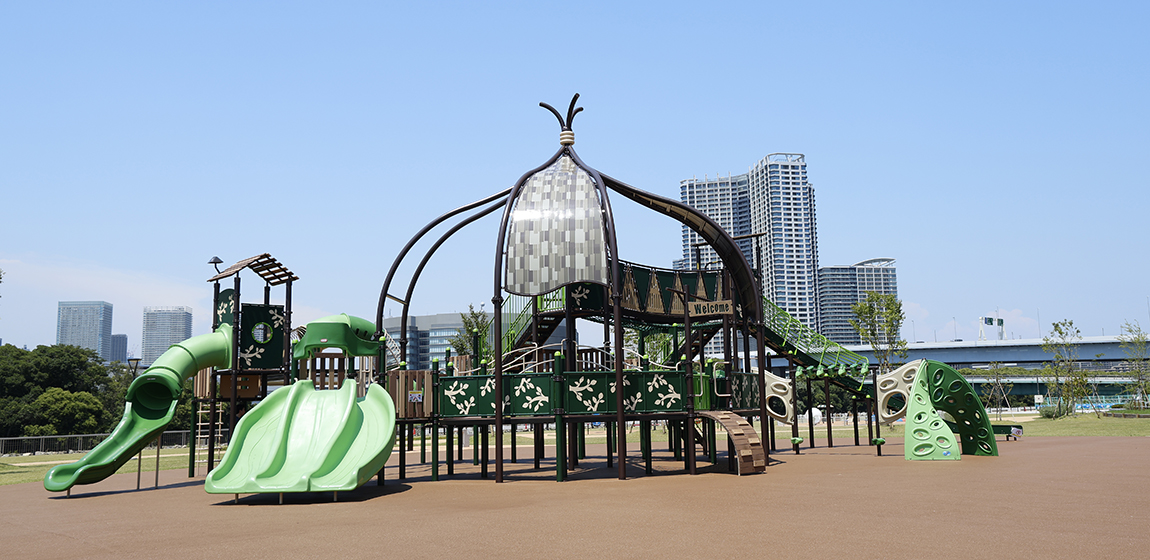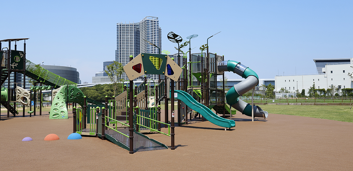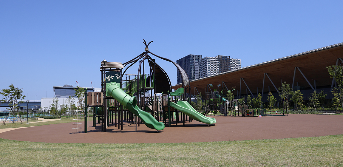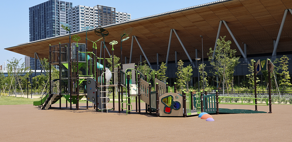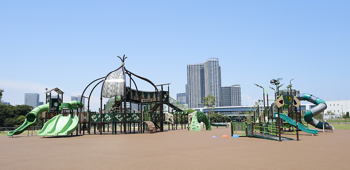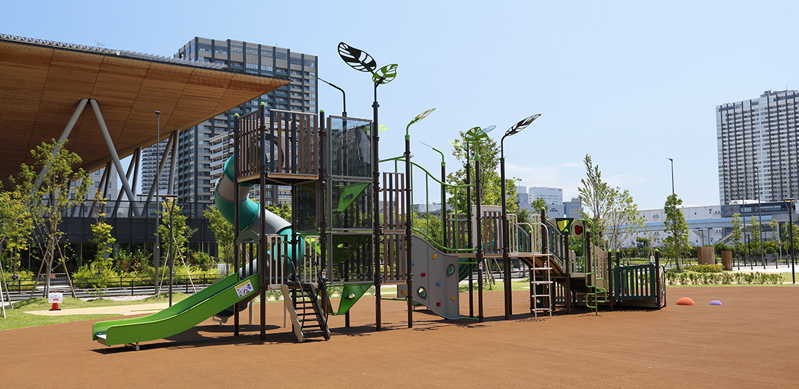 有明アリーナや商業施設が隣接した場所に遊具が充実したことで、ファミリーにとっても