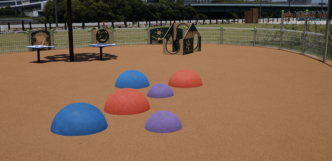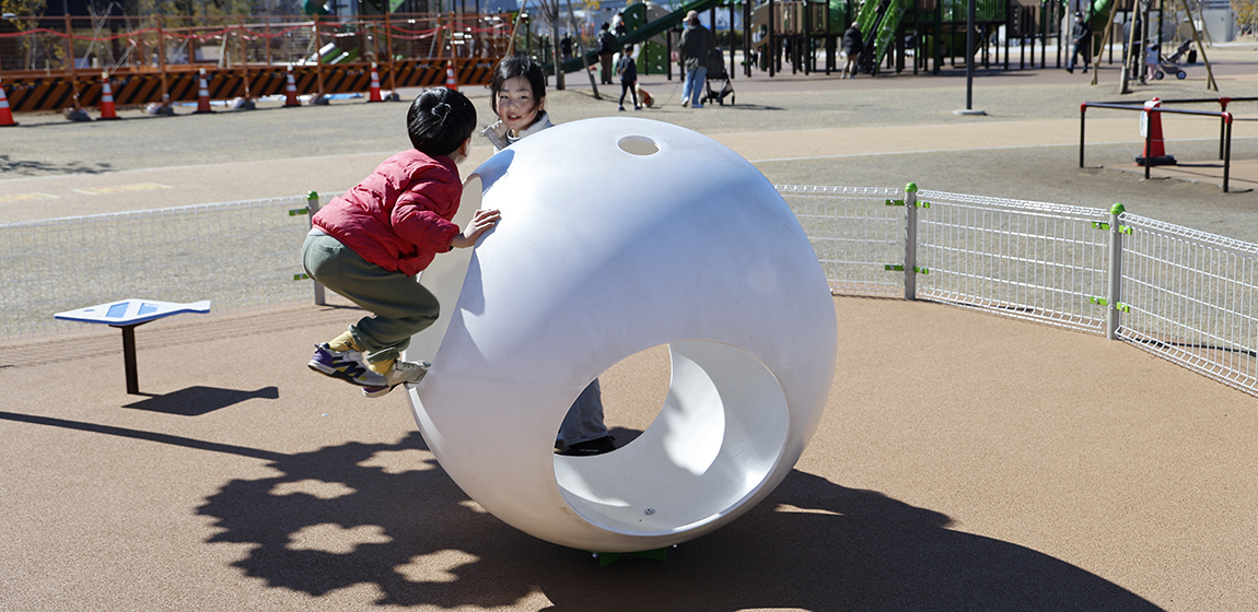 乳幼児用遊具タッタや大型児童用遊具、インクルーシブな複合遊具トットプラスを設置。