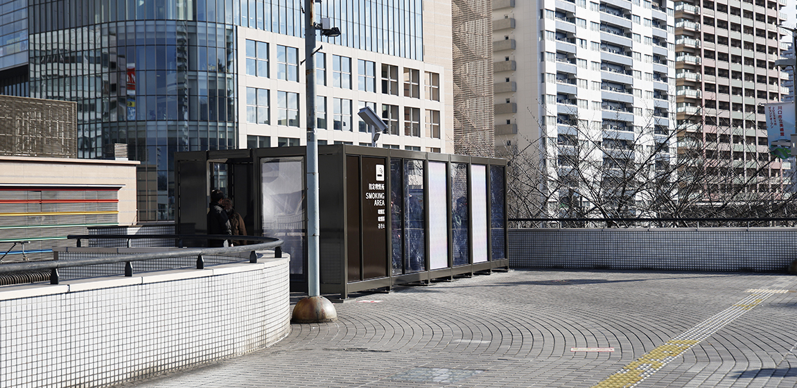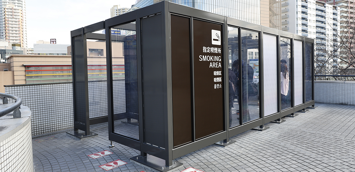 喫煙パーテーションの設置でだれもが快適に過ごせる広場に