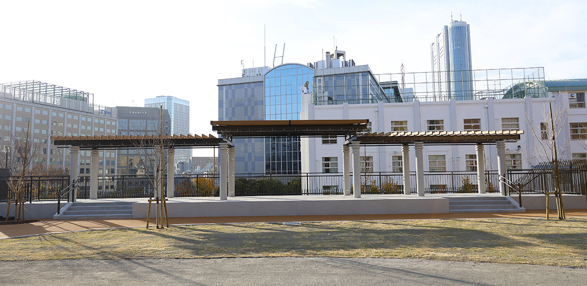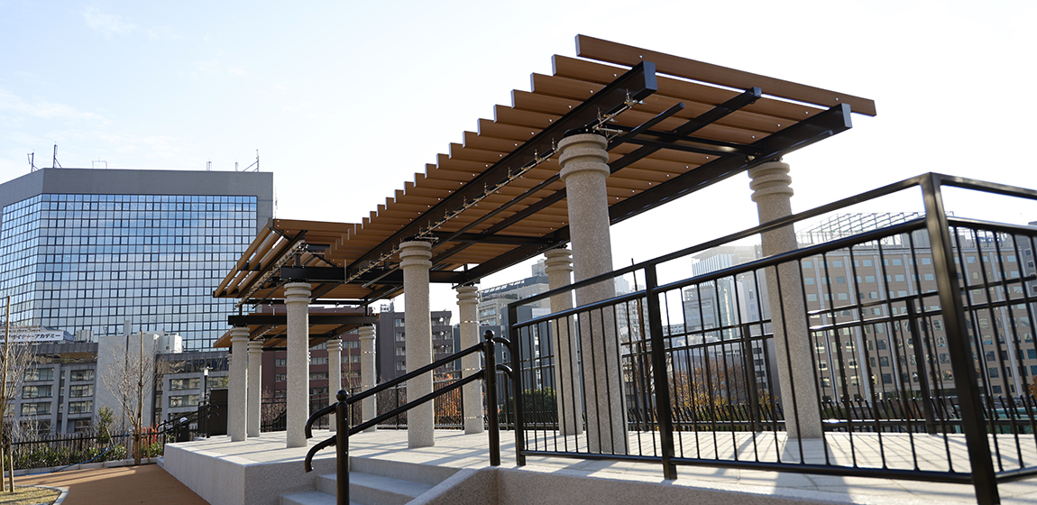 昭和初期の面影を今に残す震災復興公園に防災パーゴラを設置