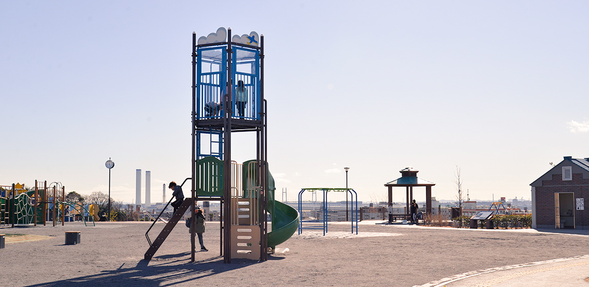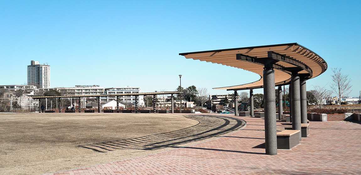 かつての花月園競輪場跡地を活用して整備された鶴見花月園公園。広々とした園内には芝生広場や遊び場が設けられ、地域住民の憩いと交流の場として親しまれています。ナカムラは、幅広い世代が楽しみながら利用できる空間づくりとして、健康器具、複合遊具、トライアルラダーのほか、防災パーゴラや収納ベンチを設置。防災機能機能も担っています。子どもたちの遊び場としてだけでなく、大人の運動や休憩の場としても活用され、世代を超えて楽しめる環境づくりに貢献しています。