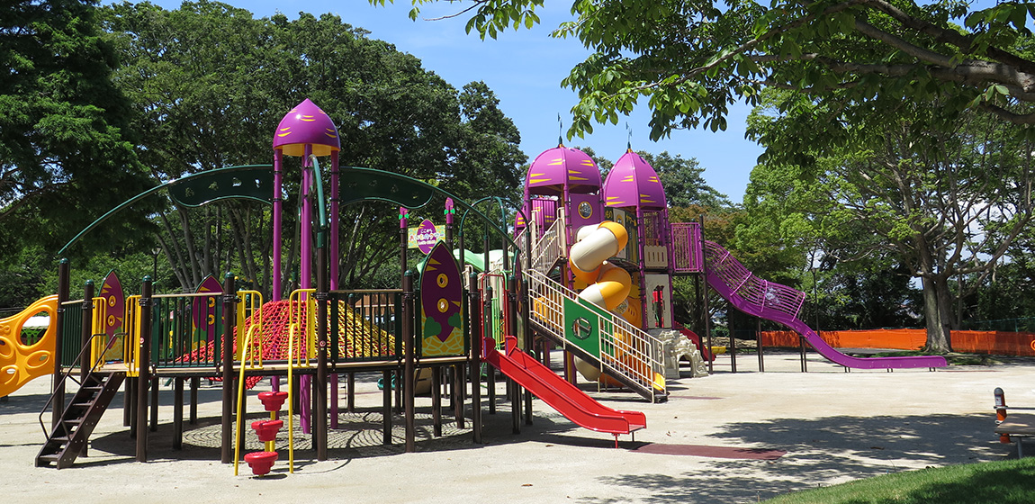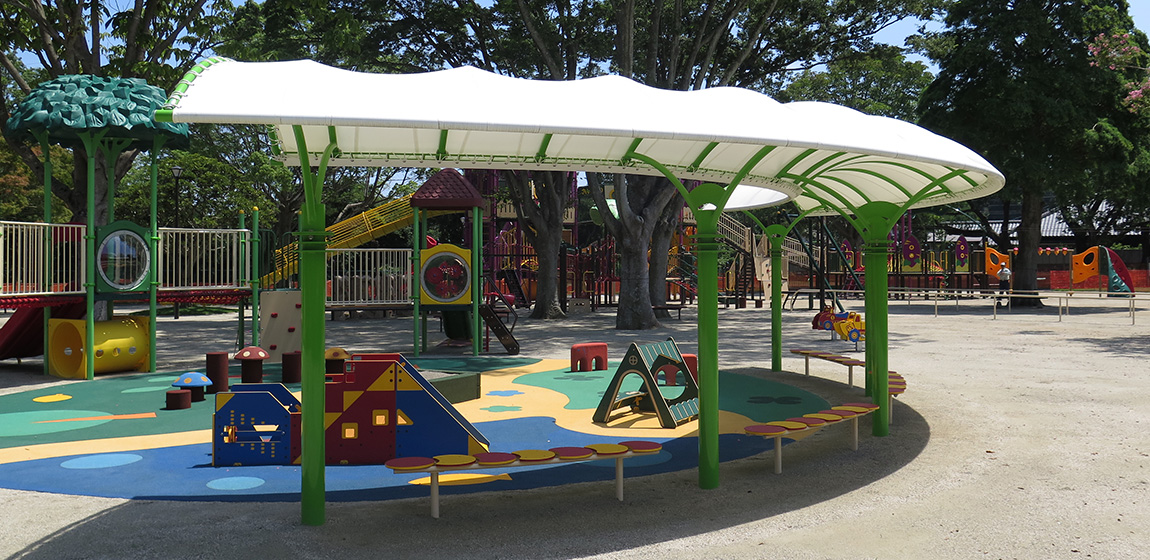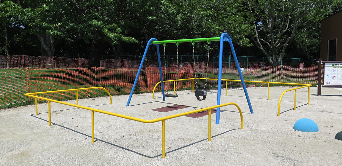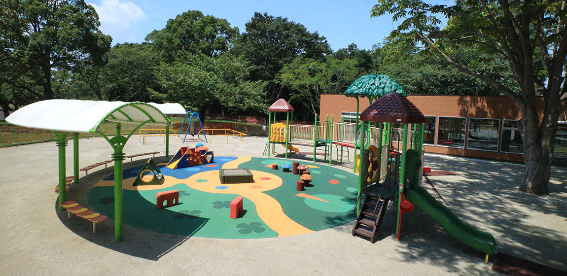 阿漕ヶ浦の自然に囲まれた広々とした公園で、散策やレクリエーションなど地域の人々に親しまれています。園内には遊びの広場も整備され、家族連れなど多くの利用者が訪れています。ナカムラは、地域特産のさつまいもをモチーフにしたオリジナルの大型複合遊具を中心に、乳幼児用遊具タッタやブランコを設置しました。地域らしさを感じられるデザインと多様な遊具により、楽しく過ごせる遊びの空間となっています。
