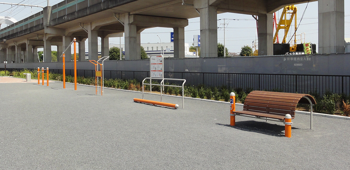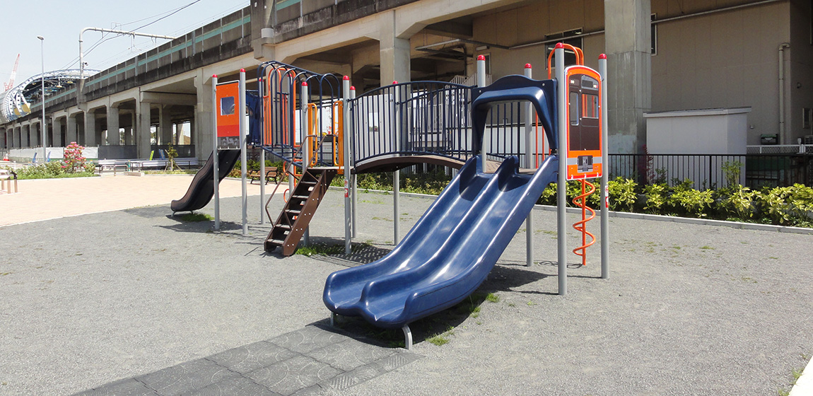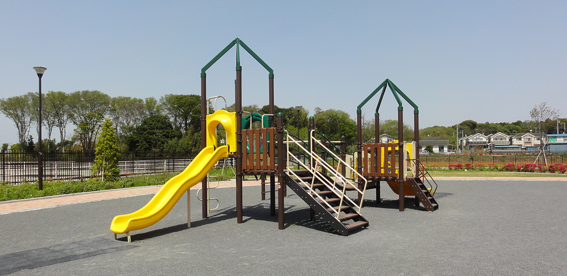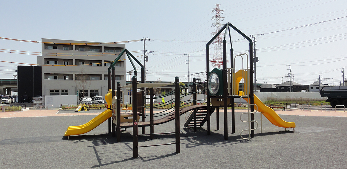 新しいまちづくりが進むゆめが丘エリアに整備された街区公園。地域住民が日常的に立ち寄り、遊びや運動、休憩を楽しめる身近な憩いの場となっています。ナカムラは、複合遊具、手すり付きユニットベンチ、健康器具を設置しました。遊びや軽い運動、休憩の場をバランスよく整えることで、幅広い世代が利用できる公園空間となっています。
