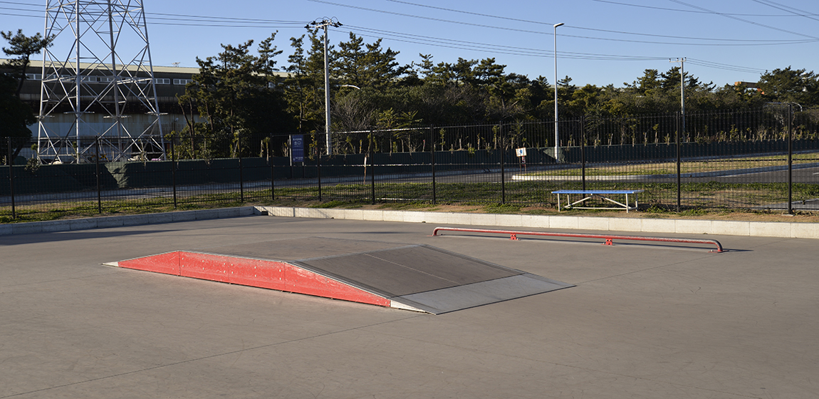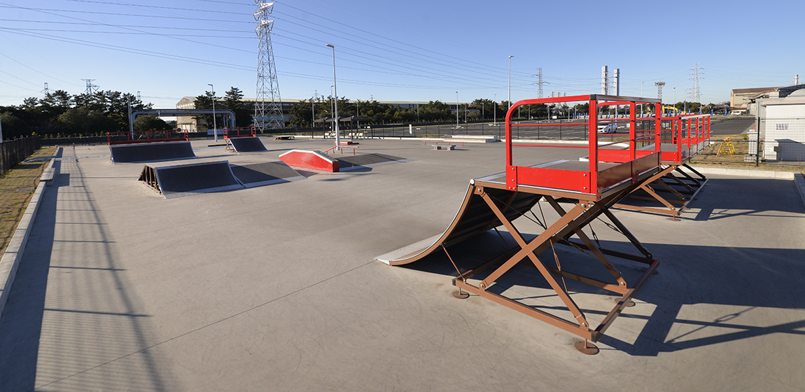 スポーツやイベントの拠点として多くの人が訪れる蘇我スポーツ公園。園内にはさまざまなアクティビティを楽しめる施設が整備され、幅広い世代に利用されています。ナカムラは、スケートボードを楽しめるスケートパークを整備しました。ミニランプやクォーターランプ、レール、ボックスなど多様なセクションを組み合わせることで、初心者から経験者まで楽しめる空間となっています。