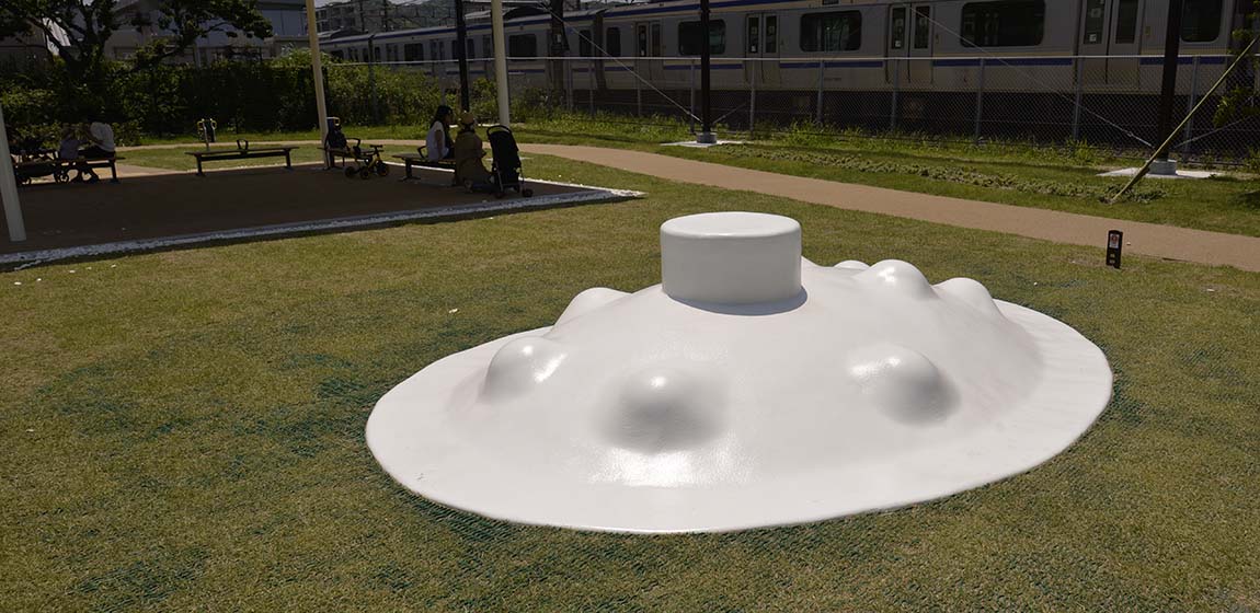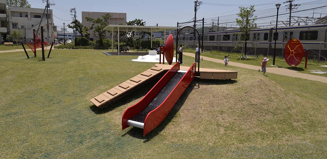 電車モチーフが楽しい、親しみのある公園空間