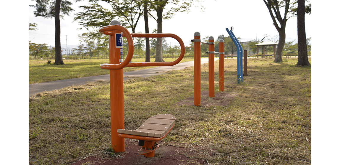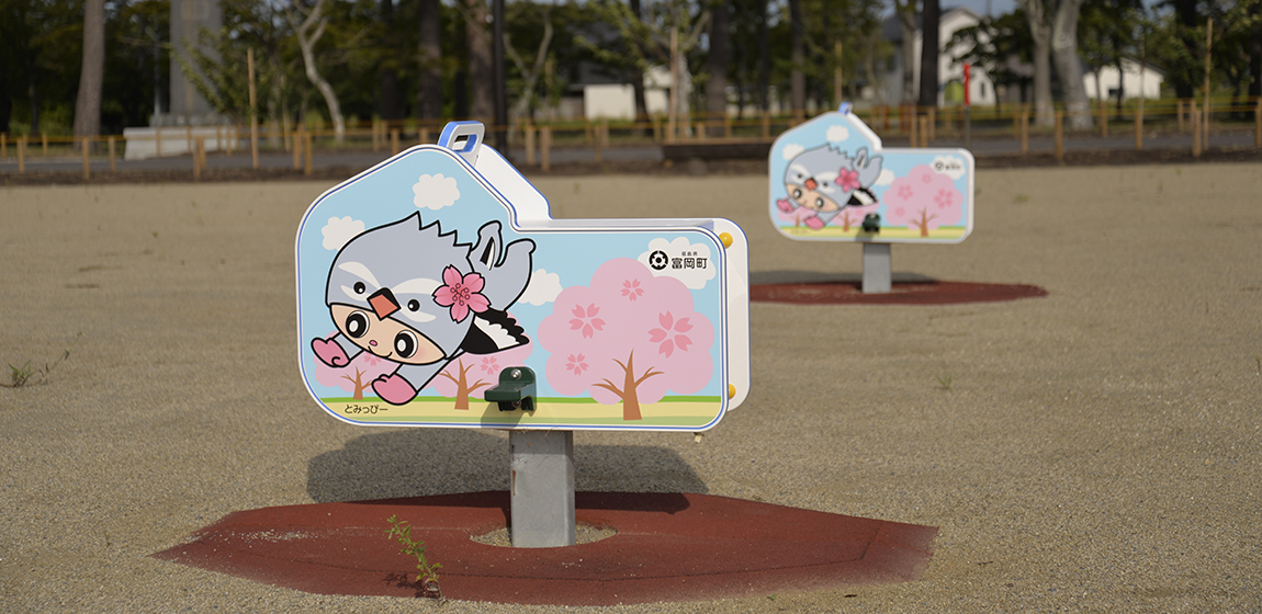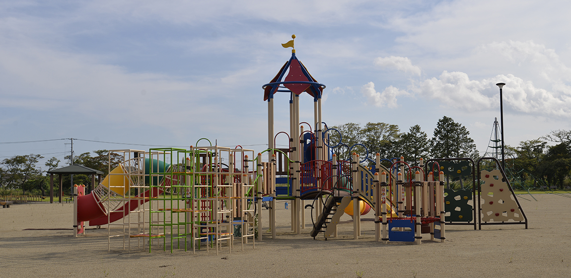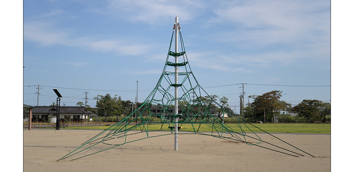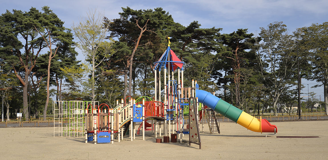 桜並木で知られる夜の森エリアに位置する夜の森公園。地域の再生とともに整備が進められ、日常の憩いと交流の場として利用されています。ナカムラは、特注複合遊具やタワーネット、特注色のトライアルラダー、ブランコをはじめ、富岡町特注ノリノリや健康器具、サークルベンチ、時計塔を設置しました。遊びや運動、休憩の場を一体的に整えることで、世代を問わず集い、過ごせる公園空間となっています。