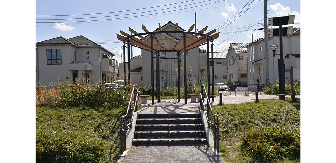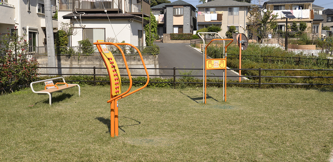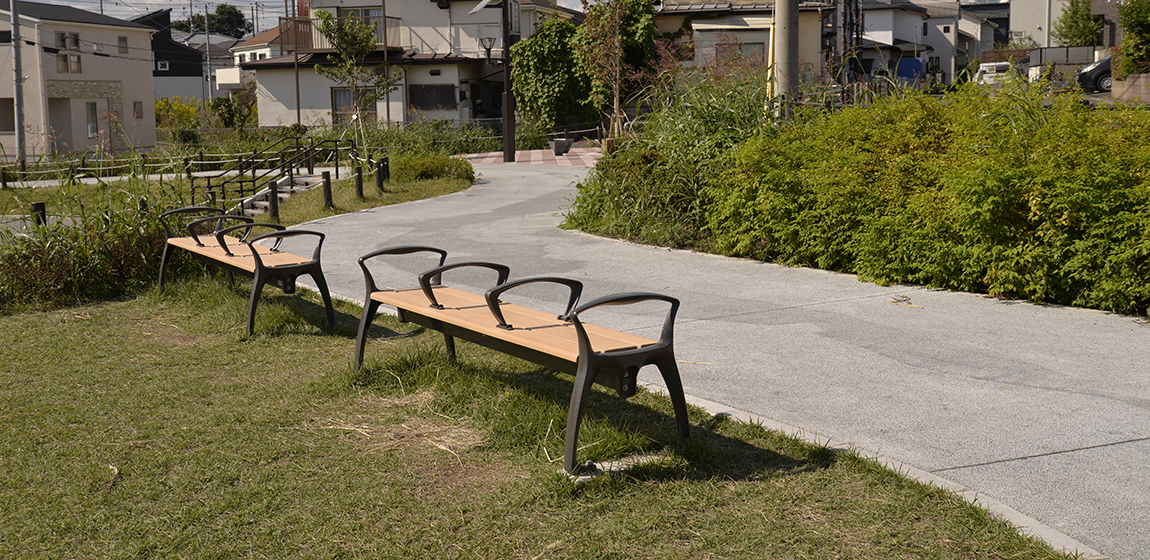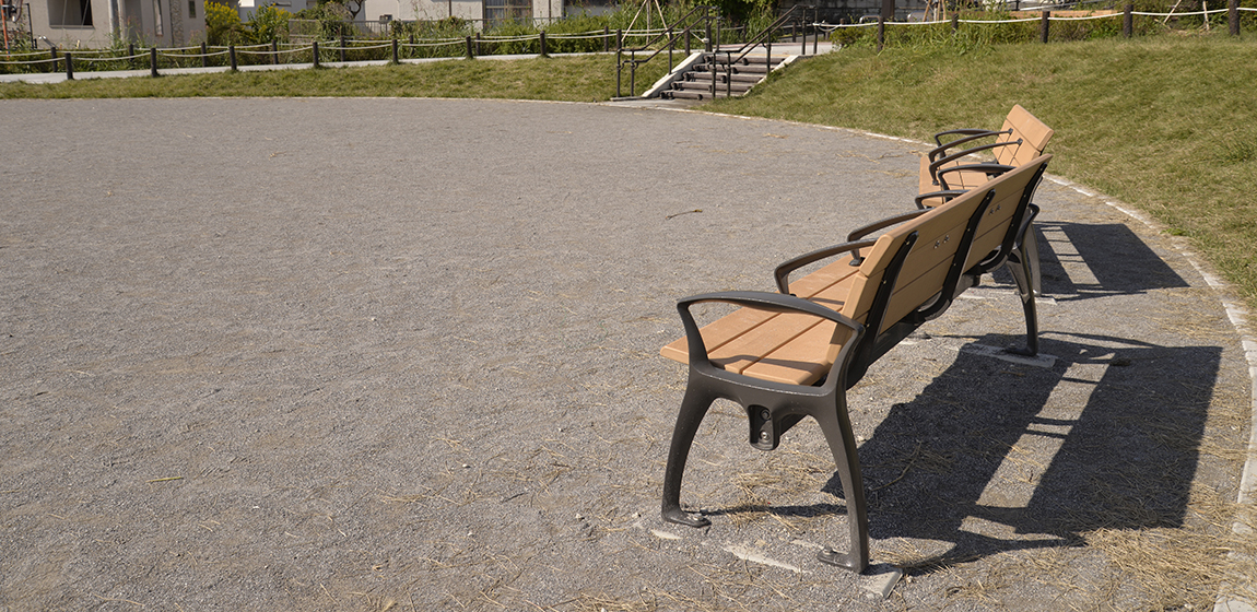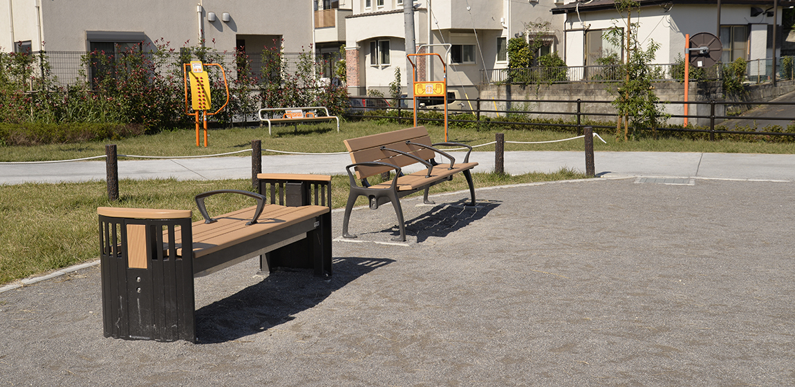 住宅地に位置し、地域の人々に親しまれている水深西公園。日常の散策や休憩、軽い運動の場として利用されています。ナカムラは、手すりやベンチ、健康器具に加え、かまどベンチや特注パーゴラを設置しました。日常利用の快適性に配慮するとともに、災害時の活用も見据えた設備を備え、安心して利用できる公園空間となっています。