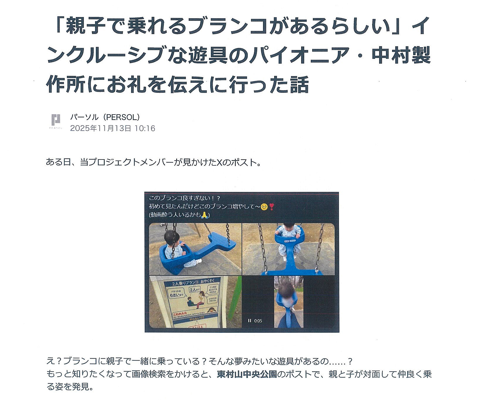 弊社のインクルーシブなブランコ座への声が取り上げられ取材を受ました。