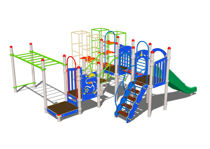 正方形に近いレイアウトで視認性のいいモデルです。スクエアクライマーから遊具を見渡すことができ、お友達と顔を合わせながら遊ぶことができます。
