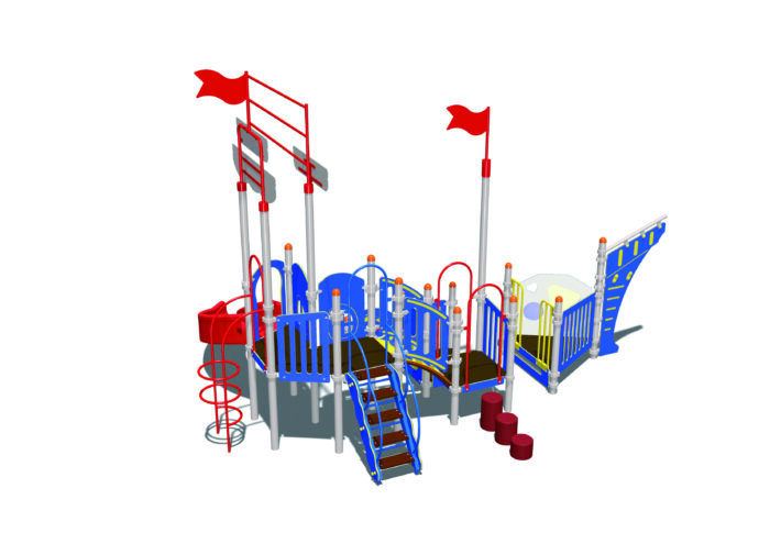 にじいろパネル、窓パネルなど静的な遊びと高さ1000㎜の低いスライダーなど年少向けの遊びを揃えた船形モデルです。