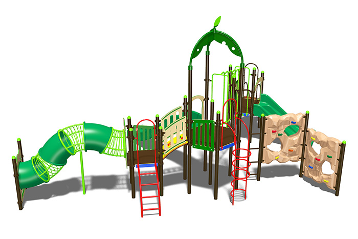 自然のなかを分け入るように遊ぶことをイメージしたモデルです。登る、くぐる、渡る遊びをバランスよく配置しています。