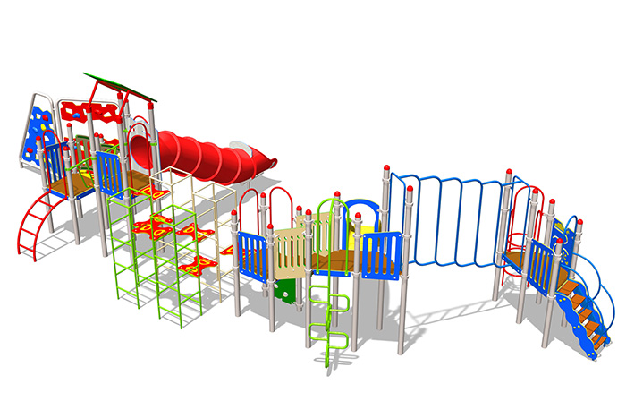 遊びが連続する楽しさいっぱいのモデルです。コミュニケーションスペースとして佇むことができるスクエアクライマーを真ん中に配置しています。
